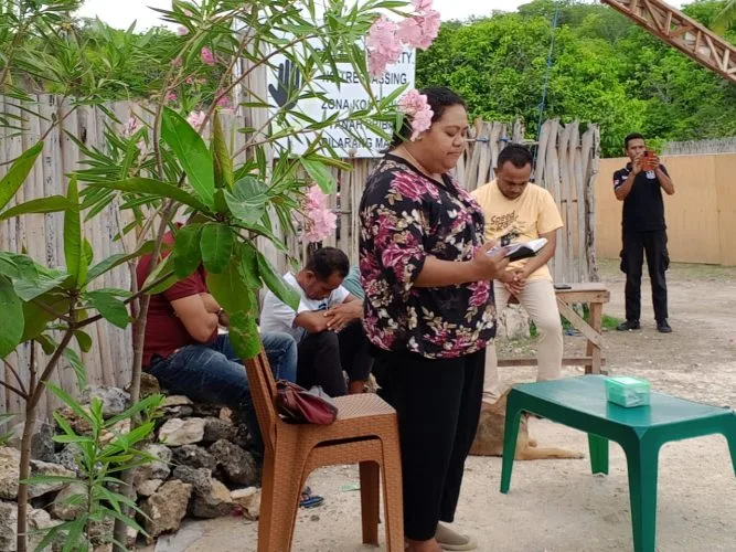 Rencana pembukaan blokade di awali Dengan Doa Bersama yang di pimpin ketua Majelis Jemaat GMIT Solavide Bo’a , Pdt Sherly Taka STh,